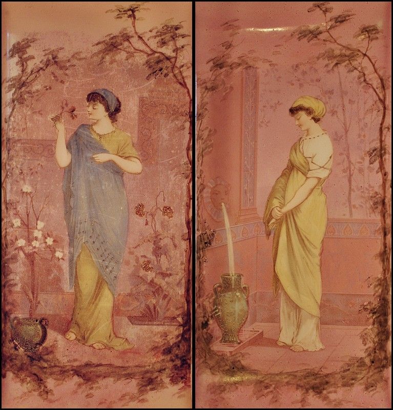 古代の服装をした女性が4種のシーンで、それぞれ猫と戯れていたり、
