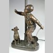 本品は彼の殆どの作品同様レギュール(亜鉛系の合金)にブロンズ風パティネを施した材質で出来ており、本来の少年と犬だけの置物に街灯を加えランプ仕立てにしたものです。