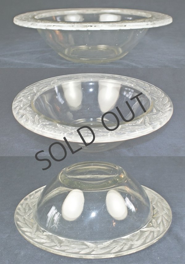 【サイズ】 高さ:8.2cm 直径:28cm【年代と国】 1930〜1940年代 フランス【サイン】 サンドブラストでR.LALIQUE 【状態】 気泡(弾けたものも)、ガラスの皺、 シミなど制作時よりの疵多少あり。