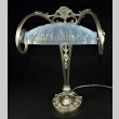 オパルセントガラスの珍しいシェードが付いた非常に美しいデスクランプです。