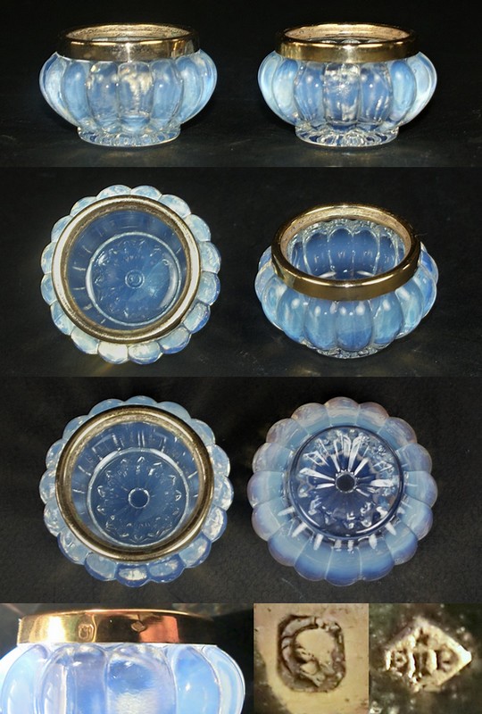 型成形の肉厚なクリスタルの器にヴェルメイユされた銀の口金が