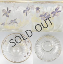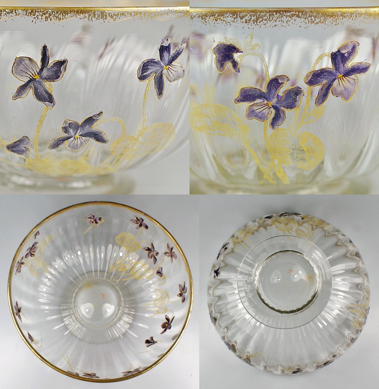 が入った無色透明のガラスにすみれの花の可憐でアールヌーヴォーなラインが金彩で良く描かれており、ルグラ得意の盛上げエナメル彩色が絵画的で美しいのです。