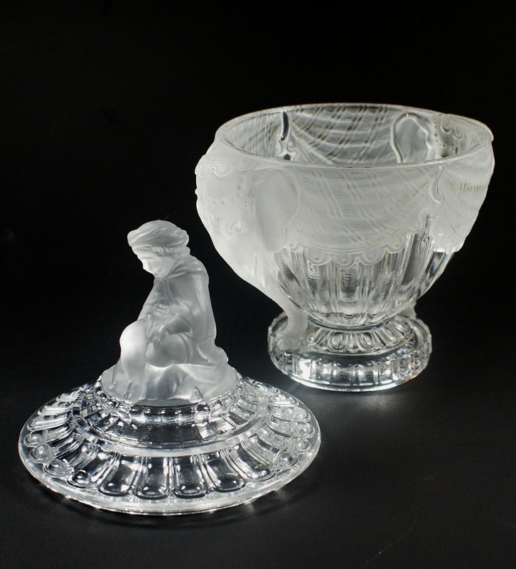 資料画像は1893年版バカラの型物カタログからの抜粋で『象の頭の砂糖入れ』と題されております。