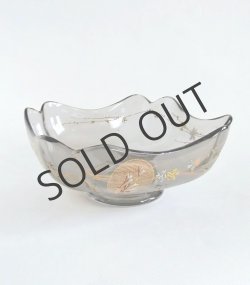 紫を帯びたスモークグレーのクリスタルに、月(おそらく)と草花がエナメルと金彩で描かれたジャポニズムな器です。