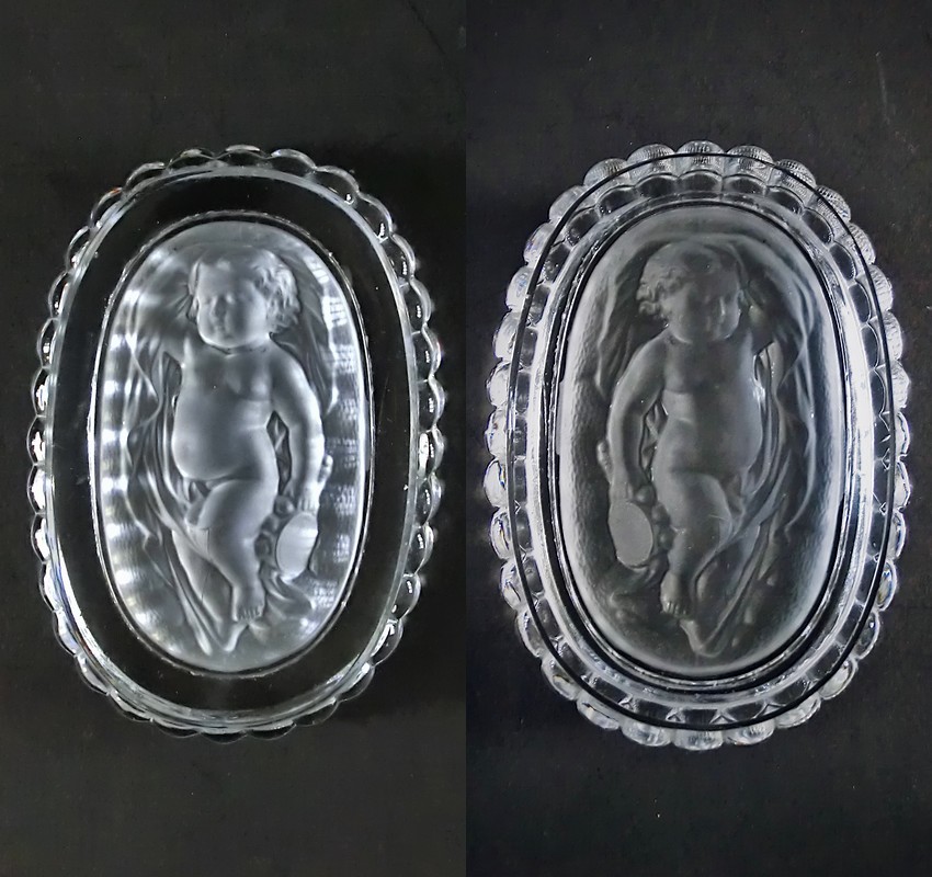 遊び疲れてタンバリンを持ったまま眠ってしまったらしい幼子が裏からインタリオ(沈み彫り)された美しいペイパーウェイトです。