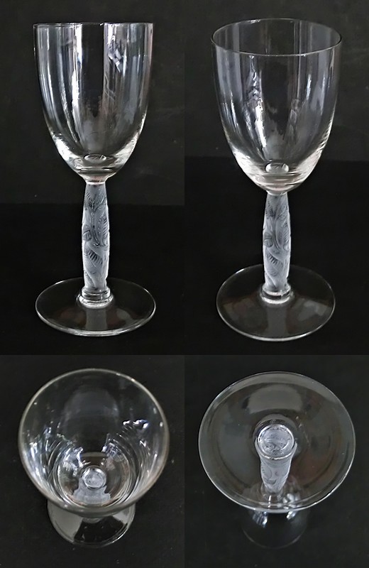 ラリックは主にステムにデザインを凝らし、ボウル部分にはあまり拘らなかったようで幾つかのシェイプを使い回しておりますが、時に本品のように同一モデルでボウルのシェイプが2種類という