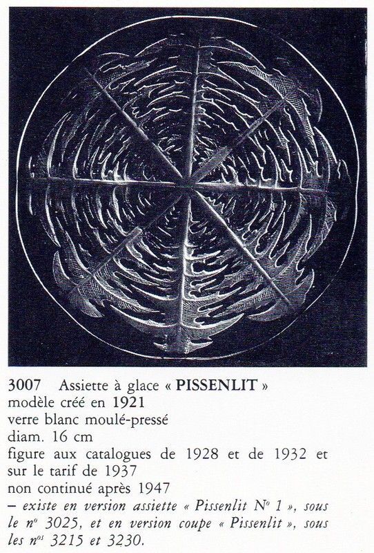 『ピソンリ』(タンポポ)はルネ・ラリックによる1921年のパターンで、戦後は復刻されておりません。大鉢、平鉢、小鉢、大皿、クレセント皿などがありますが、本品は中サイズの平皿です。