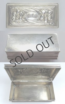 アール・ヌーヴォー的にデザインされた水仙の花が蓋にレリーフされたとても小さな純銀の小箱です。