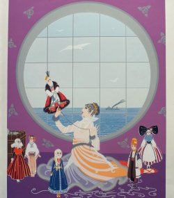 女性の衣装のみならず、色々な国の民族衣装を着せた6体の人形の衣装のディテールまで手抜き無く書き込まれており、エルテの服飾への拘りが如実に表れた作品です。