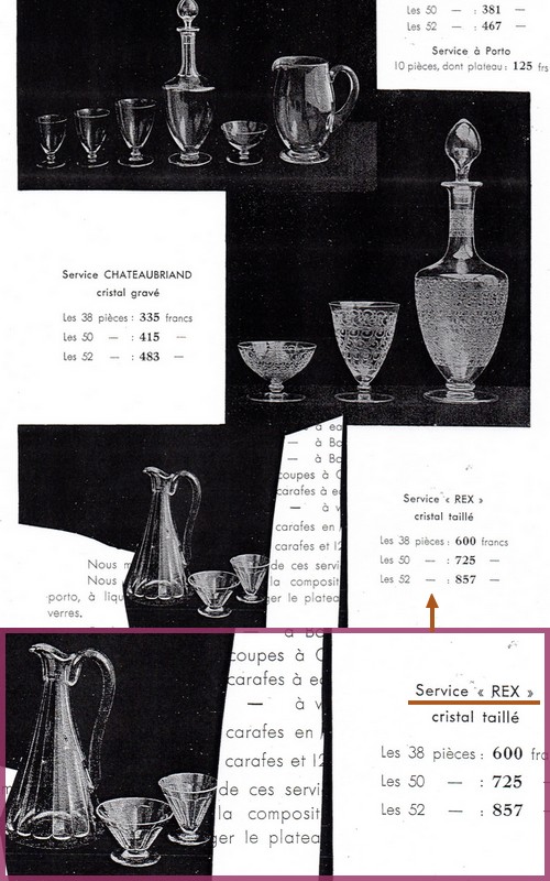 資料画像はバカラ代理店VESSIEREの1930年代のカタログからの抜粋です。 (ページの一部が切り取られておりますが、辛うじて該当部分が見られます。)