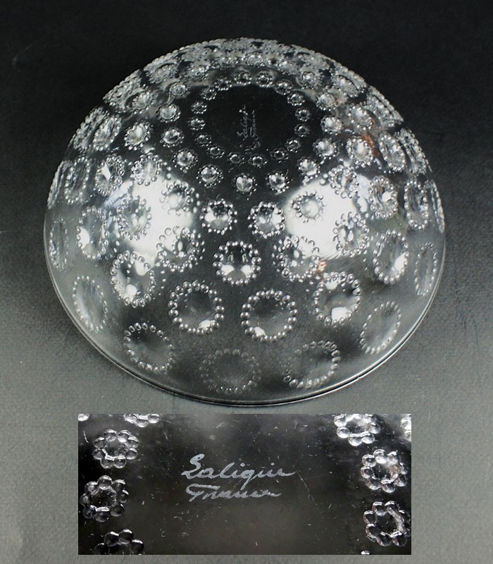 このモデルは通常サンド・ブラストでR.LALIQUEとサインが入っておりますが、本品はア・ラ・ルーで筆記体Lalique Franceとサインされております。