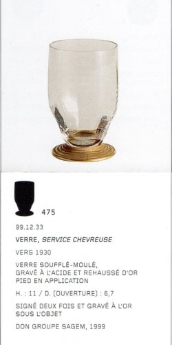アール・デコ期のドームのテーブルウェアは多種のフォルムがありますが、本品はChevreuseシュヴルーズと名付けられたフォルムのグラスです。