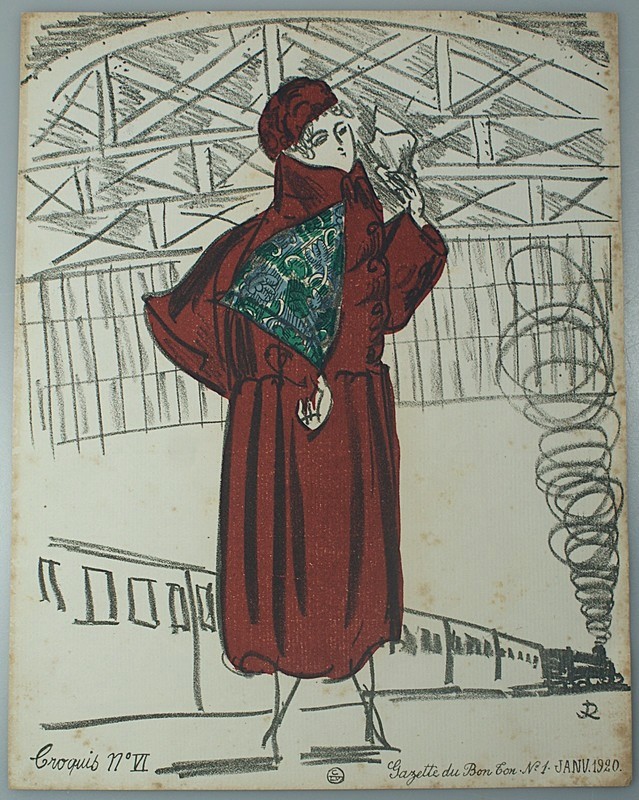 因みにこのハイクラスな雑誌は、全てのページが版画仕様で印刷され、当代の名立たる人気イラストレーター達の手になる豊富な挿絵、多色ポショワールによる美しいファッション画の綴じ込みなど他に類を見ない贅沢なファッション誌で、現代もコレクターが多く、綴じ込みのファッションプレート1枚ずつが高価で売買されております。