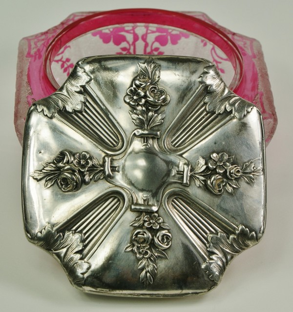 色被せクリスタルにエッチング模様を施したバカラ製品は、19世紀末から20世紀初頭の作られ、アールヌーヴォー風で繊細な図柄が美しく、