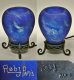 群青色というのでしょうか、濃いブルーの雲斑入りのガラスは、灯りを入れると緑を帯びたターコイズブルーの部分が表れたり、空の雲のような静かな動きさえ感じられような気がします。
