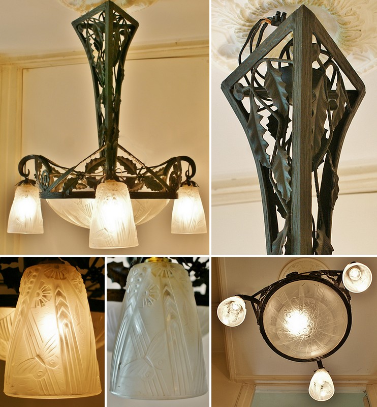 ヒイラギの葉や実をあしらった鍛鉄台は、アールヌーヴォー的なモティーフとアールデコ的なフォルムがうまくミックスされています。