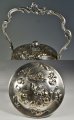 本品はルグラのエナメル彩ジェラニウム文ジャーに銀メッキの繊細なロカイユモティーフのハンドルと、ケシの花がアールヌーヴォー調にレリーフされた蓋が付いております。
