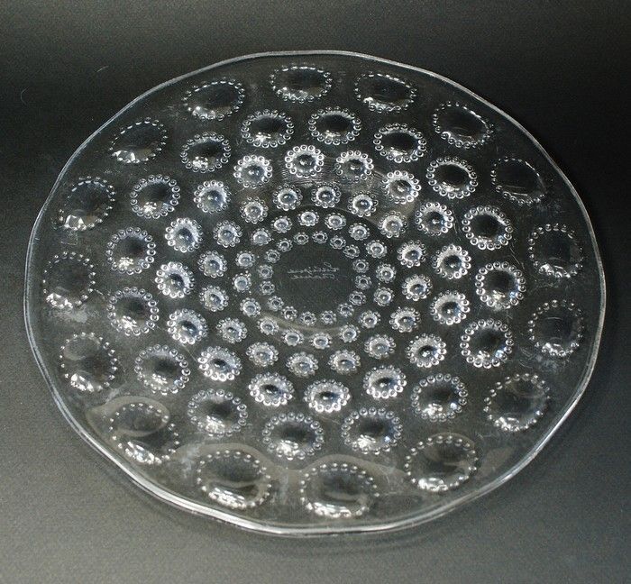 アスター(小菊)と名付けられたこのルネ・ラリック1935年のパターンは、皿や鉢など各種のテーブルウェアに展開されましたが、元々は建築材料のガラス・タイルとして壁や床に嵌め込んで使用されるべく、1934年に作られたものが原型だったようです。