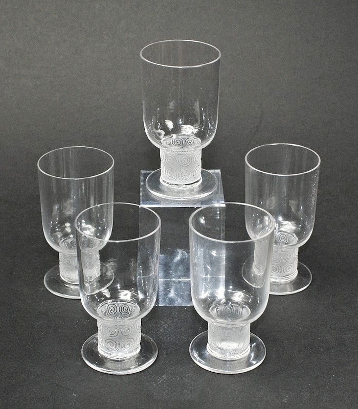 連続した渦巻き模様が型でエンボスされ、フロスト状に半透明な白いパティネがほどこされており、いかにもカップに溶着されたステムに見えて騙されます。