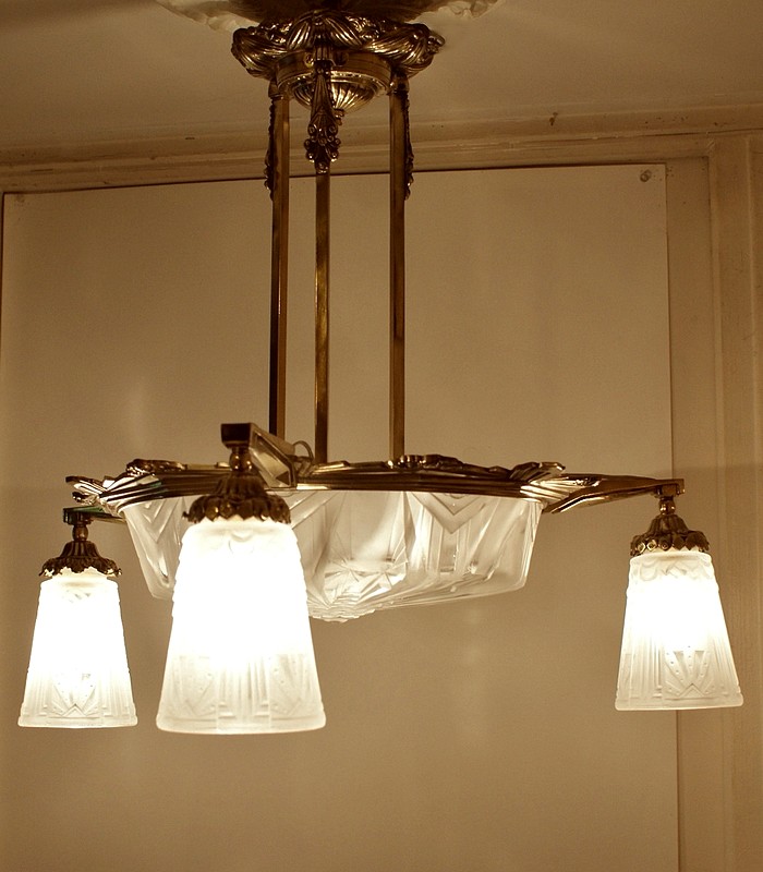 丈が短くカッチリとしたブロンズ台は、幾何学的なデザインの中にネオクラシックなモティーフを加味したリッチタイプのアールデコスタイルです。