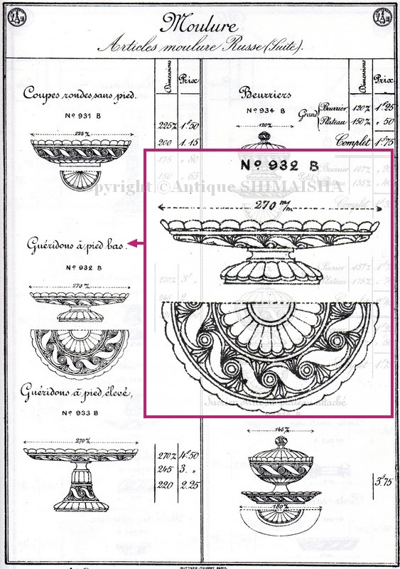 ムリュール・リュス(ロシア風モールディング)又はリュス(ロシア)と呼ばれるこの型パターンは、19世紀末より食器やトワレット用品、照明器具などに広く展開され、現代もわずかながら使われているようです。