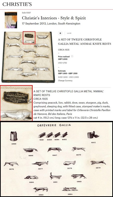 本品は1930年代のオリジナル品ですが、模造品や類似品も多数あり、1980年代にクリストフルからいくつかのモデルの復刻版も出ております。