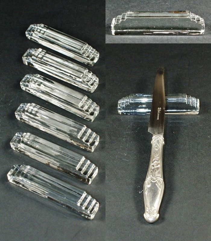 両端に階段が付いた表彰台を長くしたような、また横から見ると大型客船のようにも見えるシェイプがアールデコ的で面白いナイフレストです。